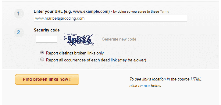 Untuk mencari apakah situs website terdapat broken link kita bisa menggunakan bantuan broken link checker. Silahkan kunjugi situs www.brokenlinkcheck.com kemudian masukan alamat url website yang akan kita cari broken link nya.
